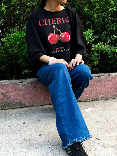 “Cherry Bliss Oversized Tee – Happy Vibes Edition” 🍒